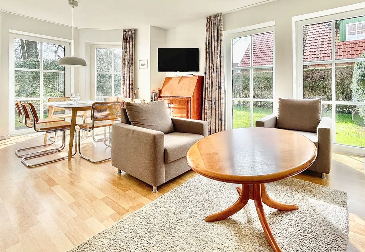 Die gemütliche 48 m² große Ferienwohnung auf Langeoog "Butendiek" befindet sich am Ortsrand von Langeoog in unmittelbarer Bahnhofsnähe, jedoch sehr ruhig und idyllisch in einer kleinen Nebenstraße. Die Einrichtung ist sehr ansprechend und bietet Ihnen alles, was Sie in Ihrem Urlaub auf Langeoog benötigen. Auf der großzügigen Terrasse genießen Sie die Sonne und haben einen schönen Blick in den grünen Garten. Die Ferienwohnung verfügt über einen geräumigen Wohn- und Essbereich mit offener Küche. Im Wohnzimmer befindet sich auch eine Schlafcouch. Das schöne Schlafzimmer ist mit einem Doppelbett ausgestattet.