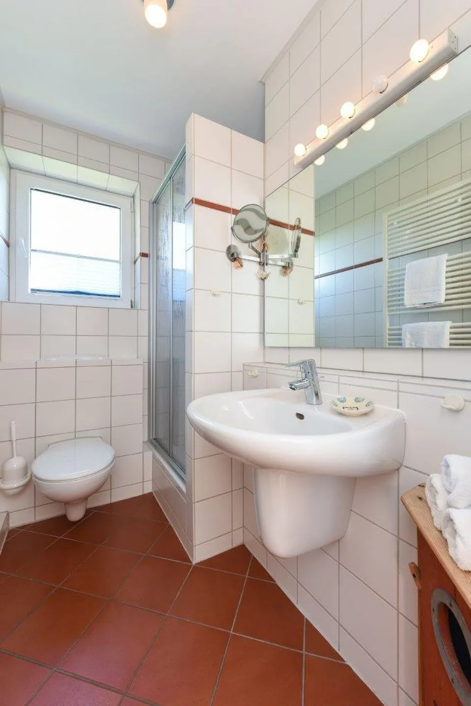 Die beiden hellen Badezimmer verfügen jeweils über eine Dusche und ausreichend Platz für entspannende Momente. Das Badezimmer im OG ist zusätzlich mit einem Bidet ausgestattet.